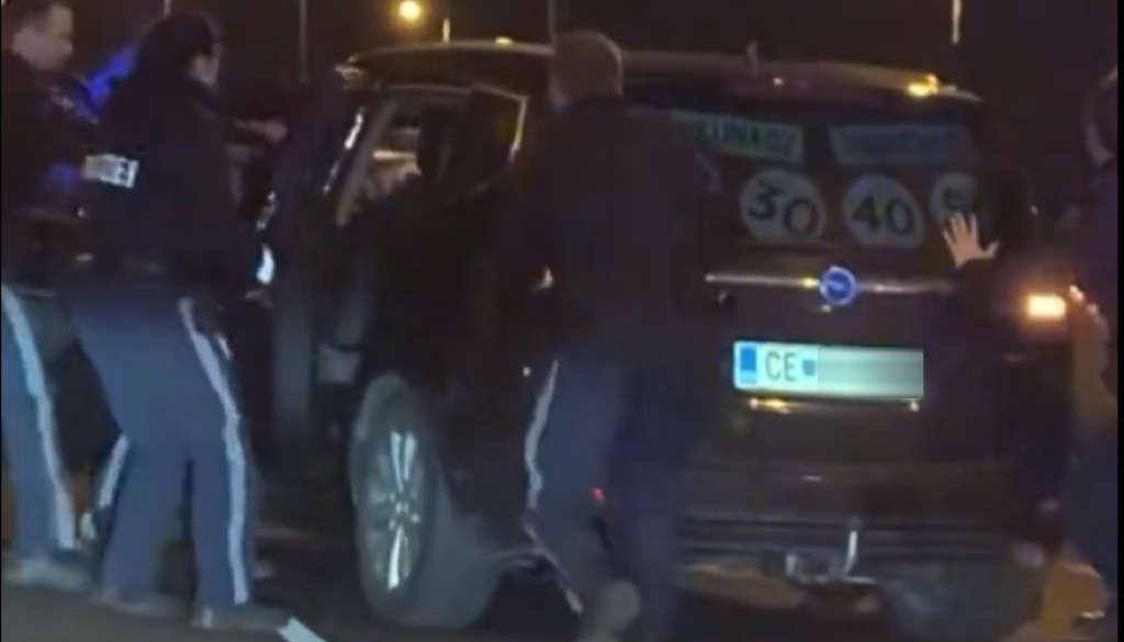 Kot je razvidno s posnetka, je pri pridržanju Celjana sredi ceste moralo sodelovati kar pet policistov, ki so ga zvlekli iz vozila.