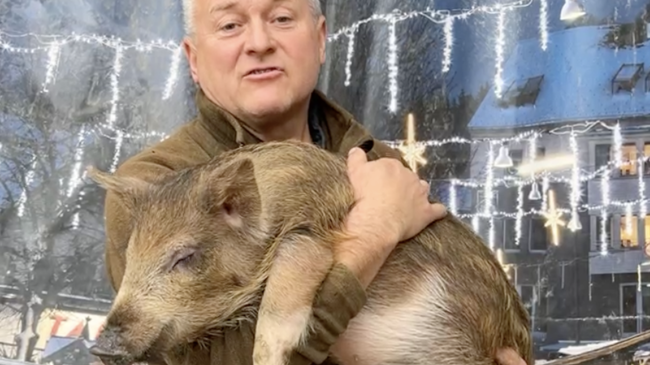 V nedavno objavljenem videu na Facebooku je Kangler z mladičem prašička v naročju izrazil božične želje svojim sledilcem.