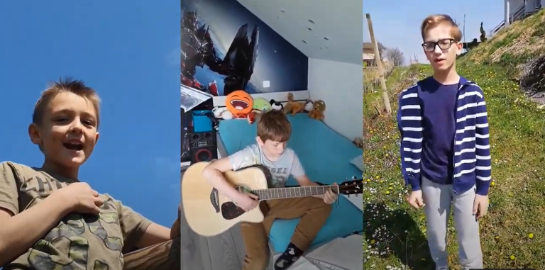 Učenci so z mobilnim telefoni doma posneli najprej avdio in nato še videoposnetke svojega petja. Nekateri niso samo zapeli, temveč tudi zaigrali na klavir, kitaro, prečno flavto, pečico, košarkarski koš, drevo in celo koš za smeti.