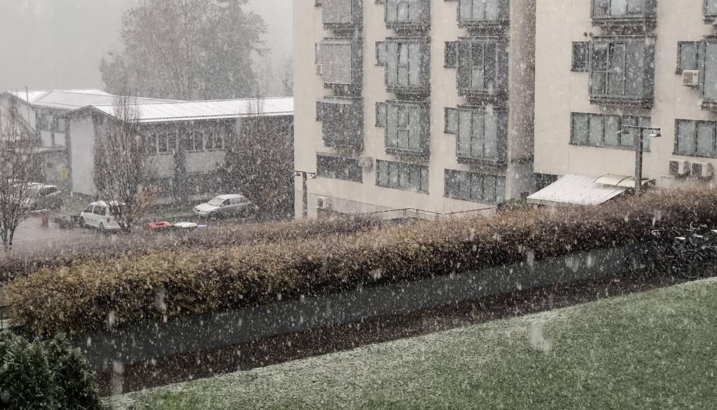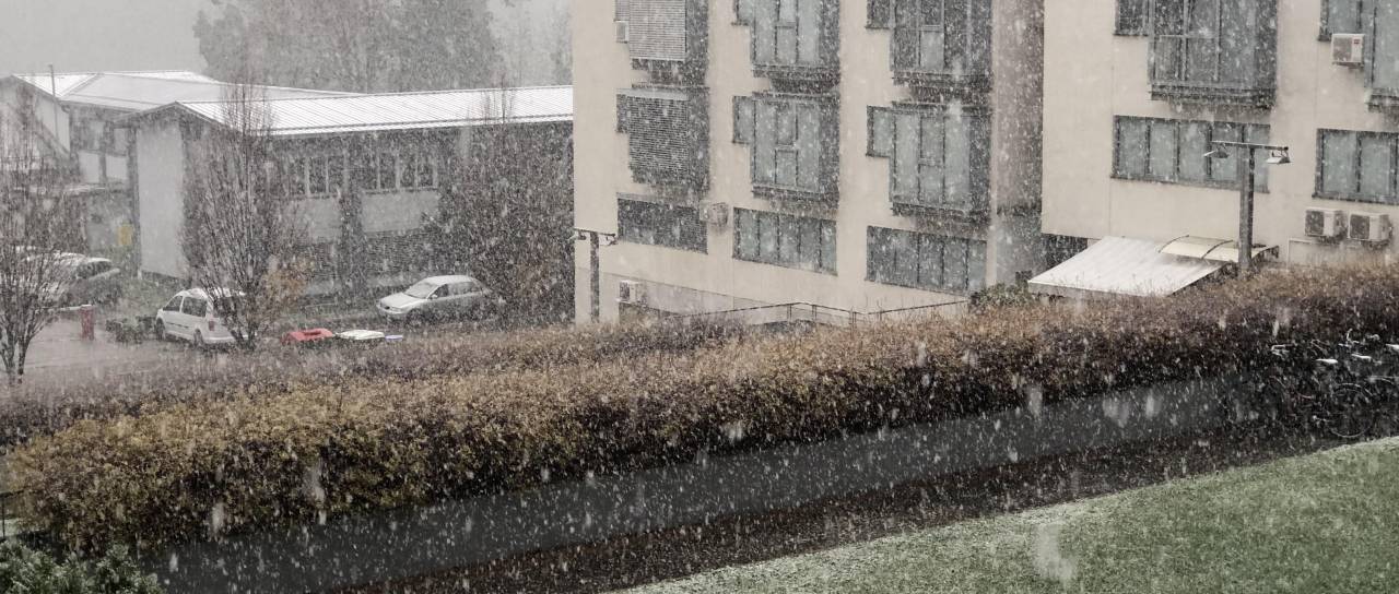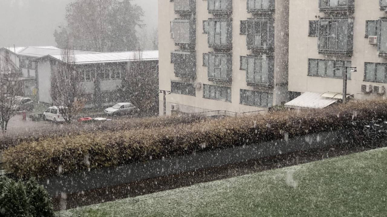 Čeprav je snežilo že od večera, sneg do jutra Maribora ni preveč pobelil. Malo po 8. uri zjutraj je sramežljivo naletavanje snežink preraslo v sneženje in sneg se je že začel oprijemati.