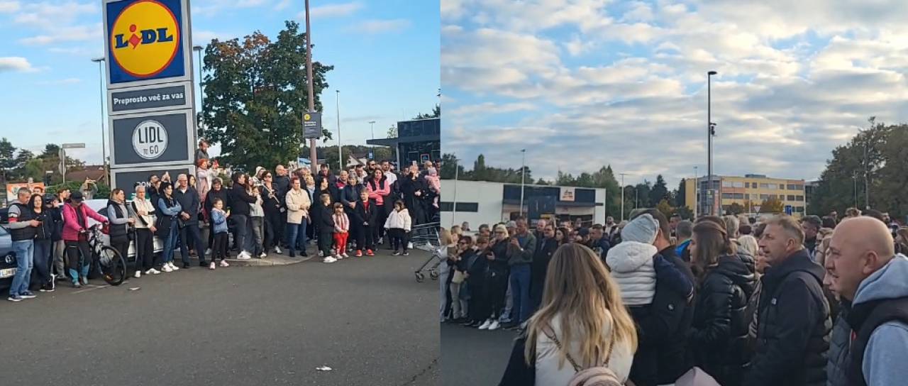 Pred trgovino Lidl na Teznu se je danes popoldne zbrala velika množica ljudi, ki se je z iskrenim spoštovanjem in pesmijo poklonila nedavno preminuli legendi balkanske glasbe Halidu Bešliću.