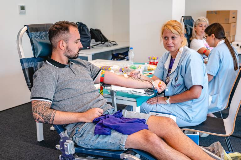 Akcija letos poteka že dvanajstič in tudi letos je odziv odličen. V medijskem centru pod severno tribuno Ljudskega vrta se zbirajo številni, ki želijo kri darovati tistim, ki jo potrebujejo.