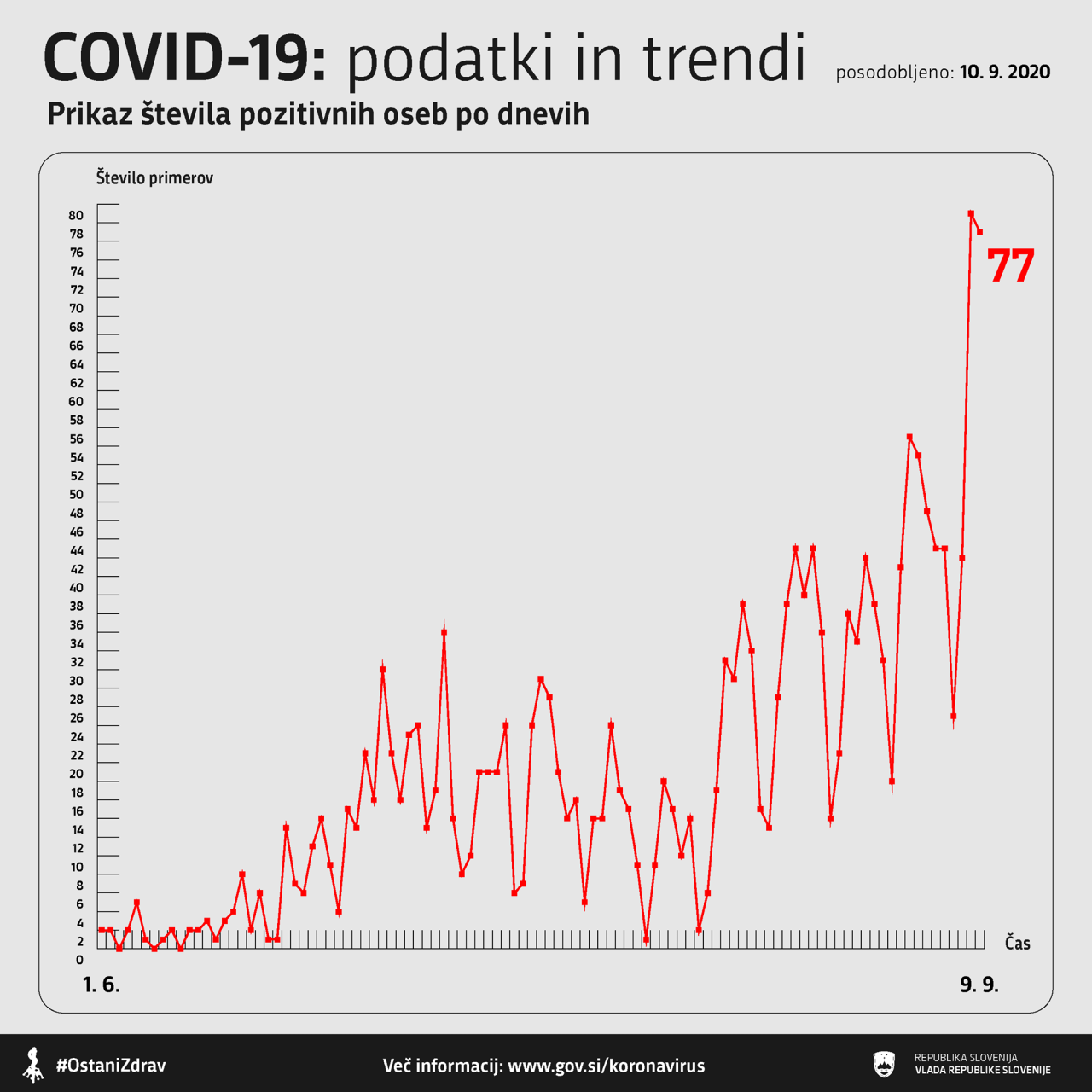 V Sloveniji so včeraj, 9. septembra, opravili 2489 testiranj na novi koronavirus. Potrdili so 77 novih okužb.