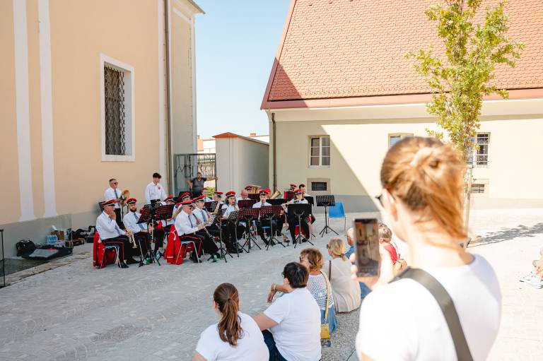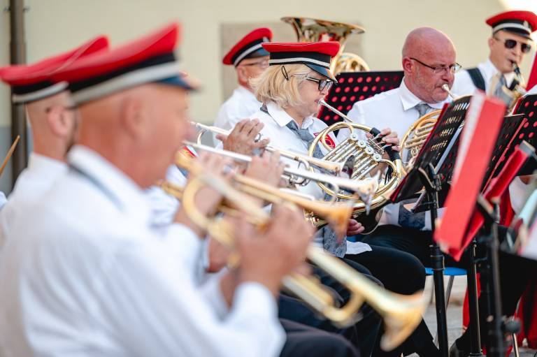 Prizorišče je pod taktirko Dejana Rakoviča napolnila glasba pihalnega orkestra Godbe Ruše, ki je postregla z »železnim repertoarjem« - koračnicami.