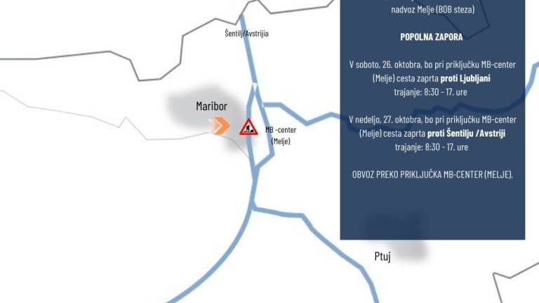 V nedeljo, 27. oktobra, bo pri priključku Maribor-center (Melje) cesta med 8:30 - 17. uro zaprta proti Šentilju /Avstriji.