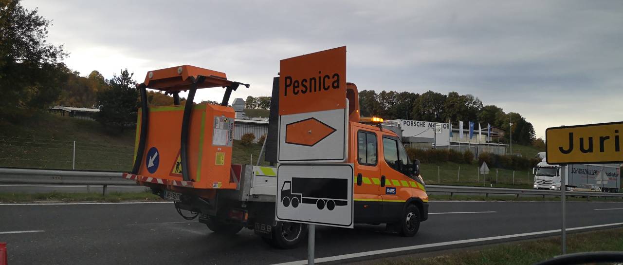 Pred krožiščem Pesnica v smeri Šentilja je popolna zapora, nastajajo zastoji.