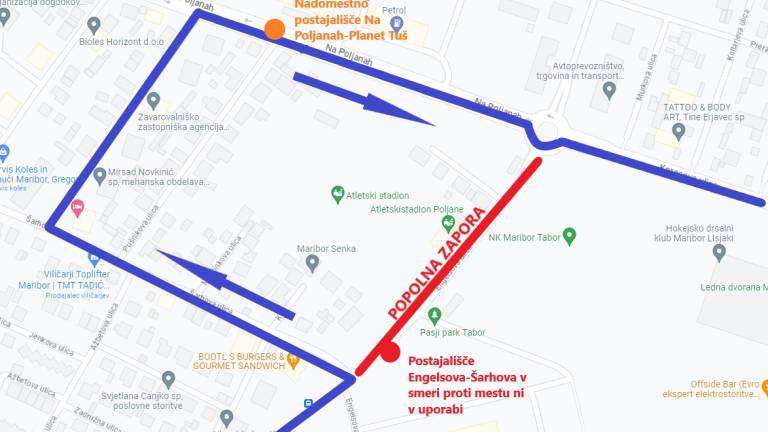 Med zaporo bo izpadlo avtobusno postajališče Engelsova–Šarhova v smeri proti mestu.