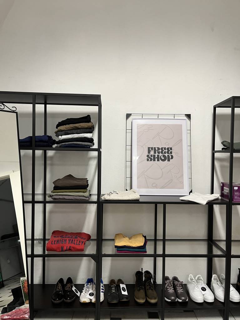 Vsi izdelki, predvsem oblačila, so čisti, zlikani in lepo zloženi ali obešeni. Na oblačilih so tudi etikete, vendar brez cen, blagajna pa simbolično ne deluje.