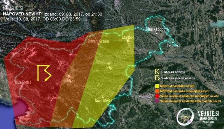 Močnejše nevihte se bodo pojavljale predvsem na zahodu države, nevihtne celice pa naj bi potovale zelo hitro. Proti vzhodu Slovenije pa je možnost za nastanek neviht vse manjša, poroča Neurje.si. Nekaj dežja bomo dobili tudi v Mariboru.