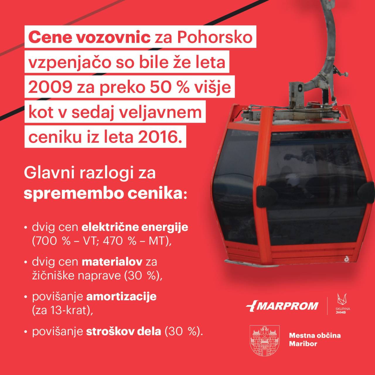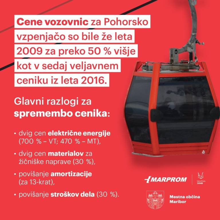 Mariborčane se bodo morali v prihodnjih tednih zraven podražitev cen vrtcev, vozovnic javnega potniškega prometa, soočiti tudi z enormnimi podražitvami cen vozovnic gondole na Mariborskem Pohorju.