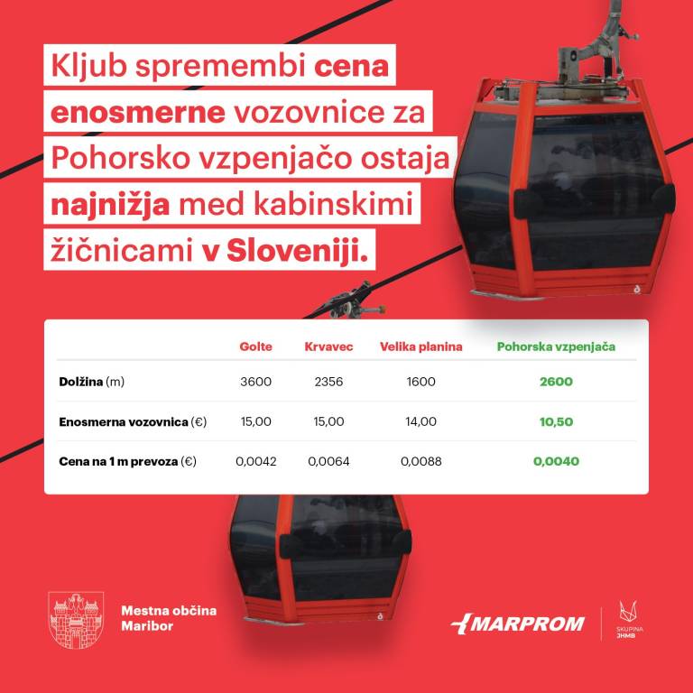 »Kljub povišanju bodo cene vozovnic za prevoz s krožno kabinsko žičnico na Mariborskem Pohorju še vedno nižje (najnižje v Sloveniji za enosmerno odraslo vozovnico) ali primerljive s cenami vozovnic za ostale kabinske žičnice v Sloveniji in tujini,« dodajajo na občini.
