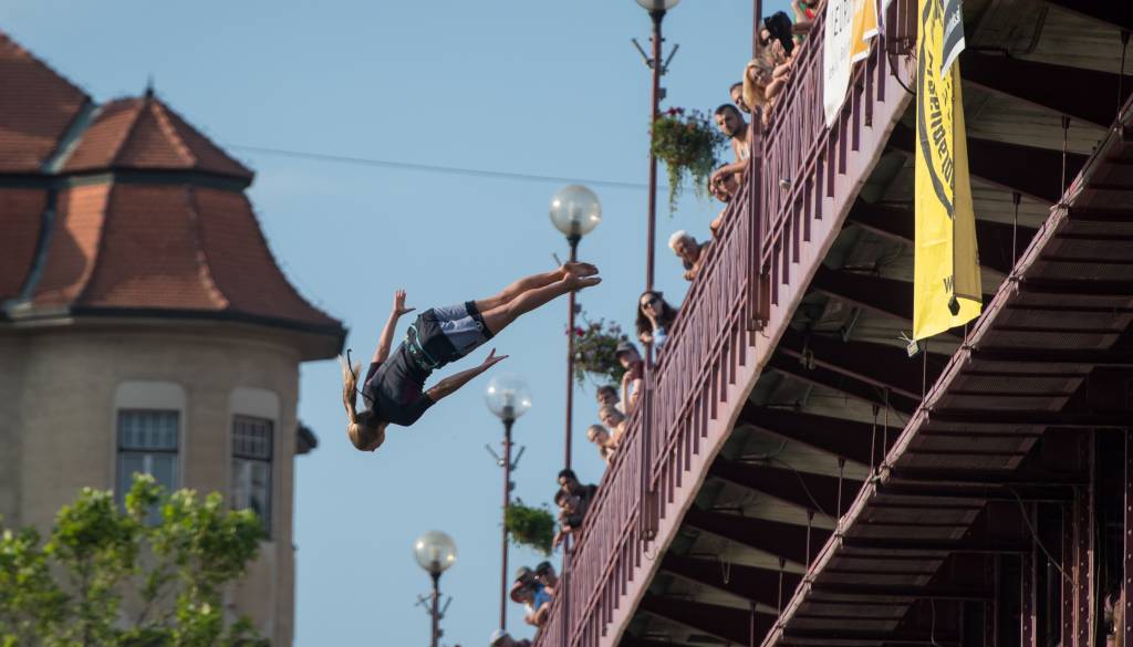 Društvo Adrenalin K. O. v soboto, 8. julija, z začetkom ob 16.00, organizira 23. tradicionalno mednarodno tekmo v akrobatskih skokih z Glavnega mostu.