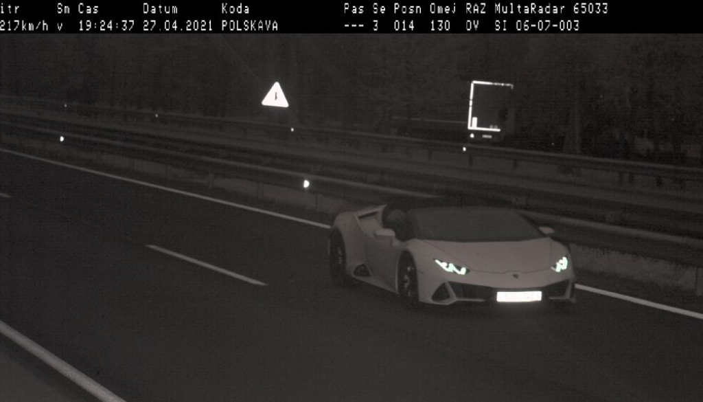 Policisti Oddelka za upravljanje prometa in meritve s samodejnimi merilnimi sistemi na Upravi avtocestne policije so na praznični torek okoli 19.30 na avtocesti iz smeri Maribora proti Celju posneli tujega voznika osebnega avtomobila znamke Lamborghini Huracan, ki je na mestu, kjer je hitrost omejena na 130 km/h, vozil s hitrostjo kar 217 kilometrov na uro.