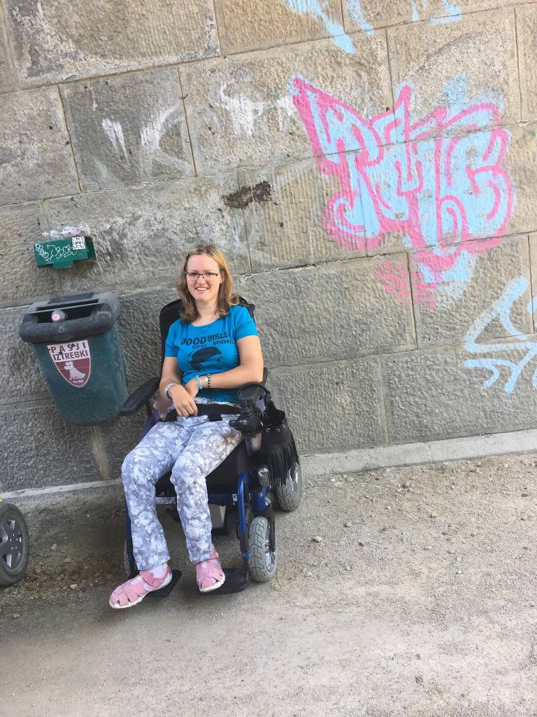 22-letna Agnes se je rodila dva meseca prezgodaj, kar je imelo za posledico cerebralno paralizo – spastično diplegijo. Njena diagnoza vpliva predvsem na gibalno-motorične sposobnosti, kar pomeni, da pri gibanju uporablja električni voziček, za vsakdanje normalno funkcioniranje pa nujno potrebuje pomoč asistenta.