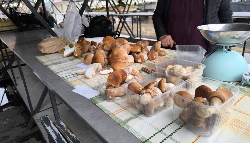 Za primerjavo, na ljubljanskih tržnicah je ponudba gob nekoliko bolj raznolika. Poleg jurčkov so na voljo tudi lisičke in marele, vendar so cene precej višje.