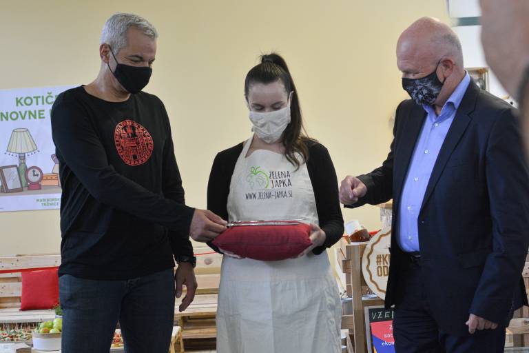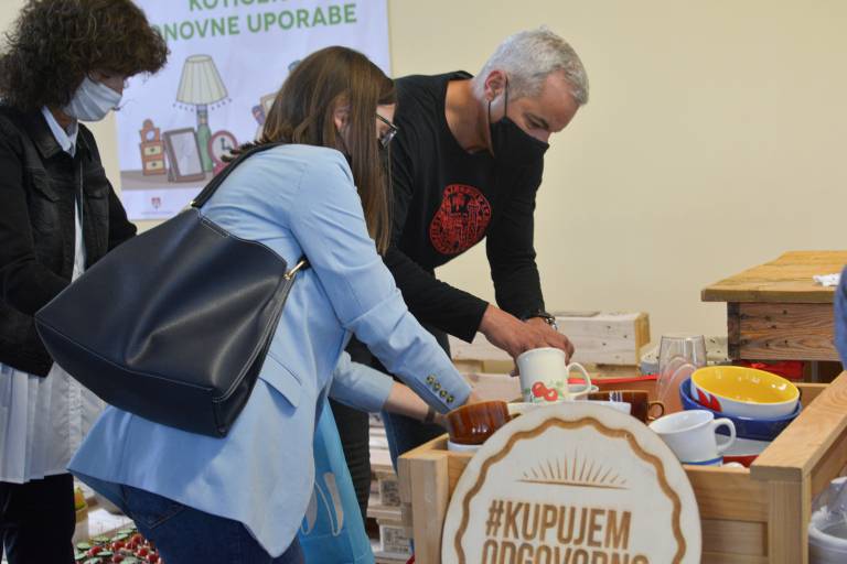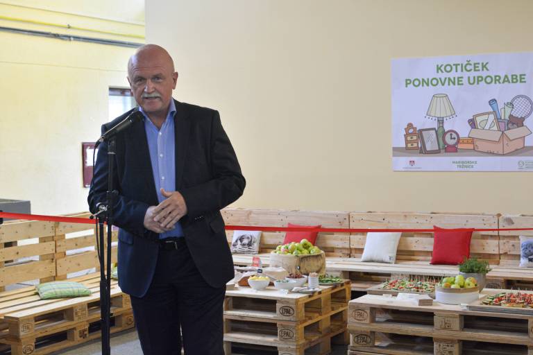 Takoj po otvoritvi sta mariborski župan in direktor Snage prinesla nekaj predmetov, ki sta jih odložila v Kotiček ponovne uporabe.
