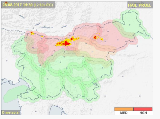 Možna je tudi kakšna močnejša nevihta, pihal bo veter vzhodnih smeri. Agencija Republike Slovenije je tako za Podravje izdala rdeč alarm za nevarnost toče.