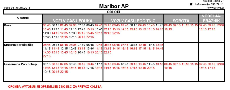 Kolesarji pa se lahko do Maribora zapeljejo kar brezplačno. Letošnja novost je, da je prevoz za kolesarje na relaciji Maribor-Ruše-Lovrenc na Pohorju, ki skupaj s kolesom potujejo na avtobusu, brezplačen.