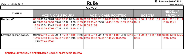 Med Občino Ruše in Arrivo Štajerska je sklenjen dogovor o financiranju vozovnic za kolesarje in prevoz njihovih koles, ki velja od 1. aprila do 31. oktobra. Tako občina v celoti subvencionira prevoz kolesarja in njegovega kolesa.