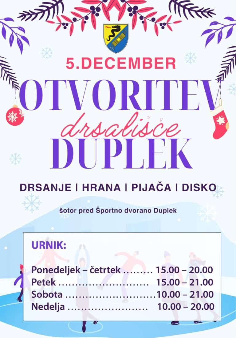 Občina Duplek je sporočila, da se v kraj vrača pravo zimsko vzdušje, saj bo drsališče ponovno odprlo svoja vrata.