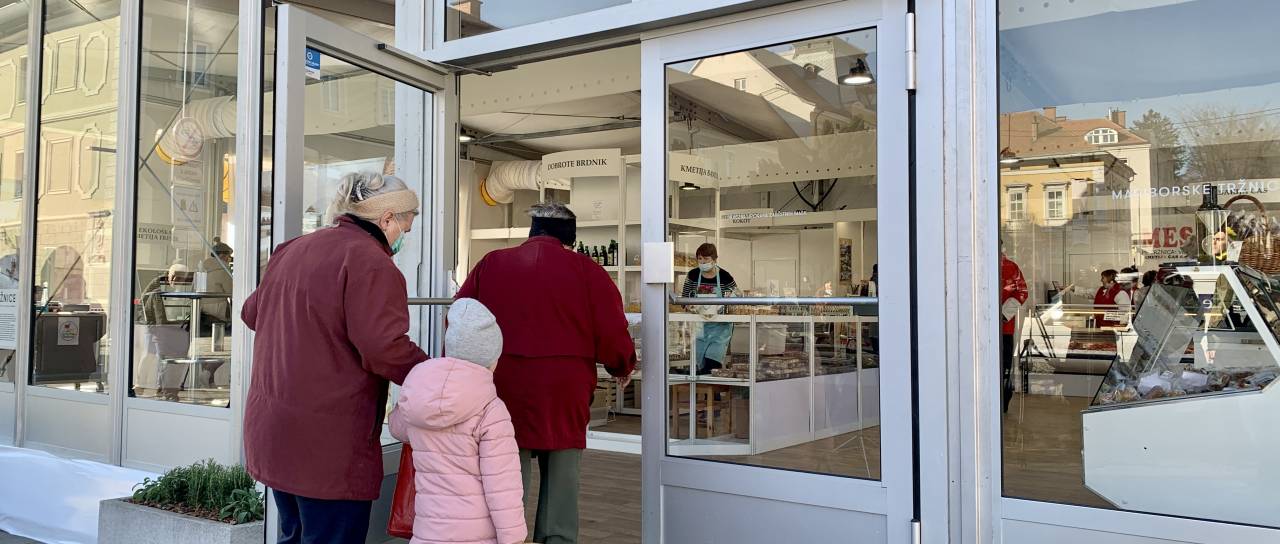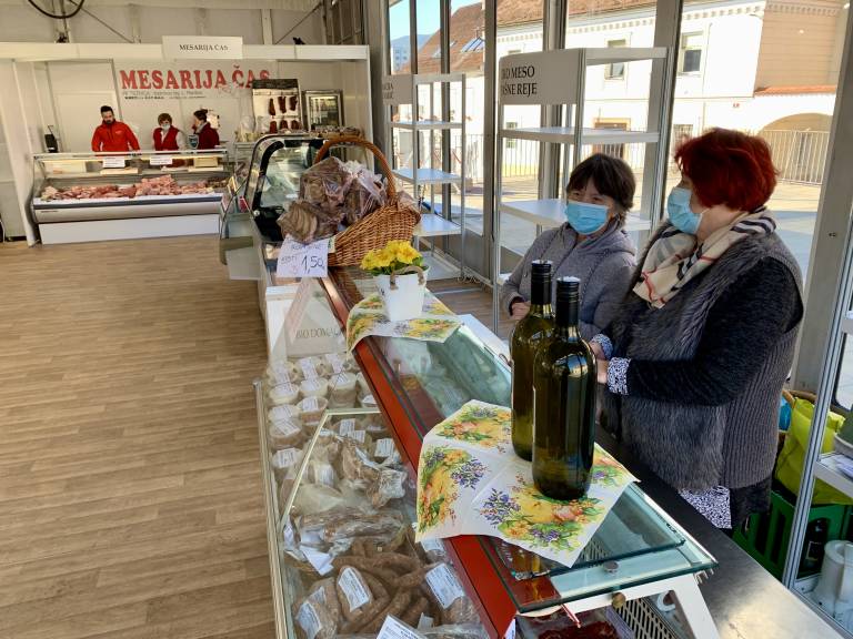 Do postavitve začasnega paviljona so prodajalci tako dober mesec dni svoje izdelke prodajali v teh lesenih hiškah. »Vseeno so nam zagotovili, da smo vsaj nekje lahko prodajali, ker od tega živimo,« je povedala Marija Gorjup iz Kmečkega turizma Gorjup.