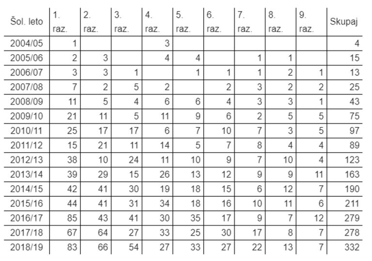 V šolskem letu 2004/2005, ko so se začeli prvi otroci šolati na domu, je bilo število teh samo 4, v šolskem letu 2018/2019 pa je bilo doma šolajočih se otrok kar 332.