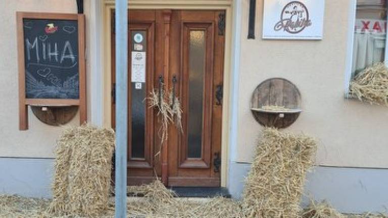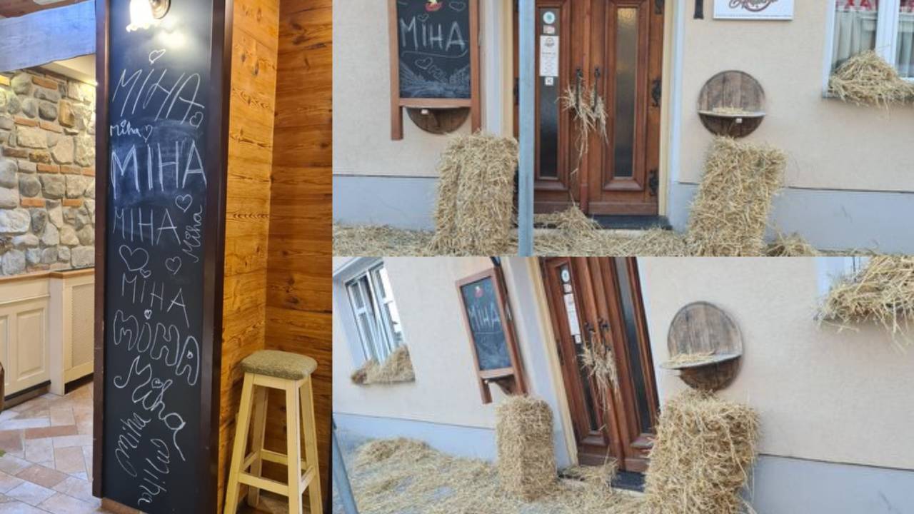 Vhod v gostilno je namreč zasipan s slamo.
