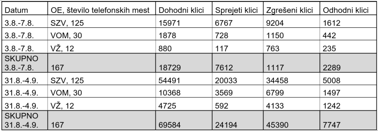 Število telefonskih klicev se je bistveno povečalo ob zaključku počitnic in po vrnitvi ljudi v svoj kraj bivanja.