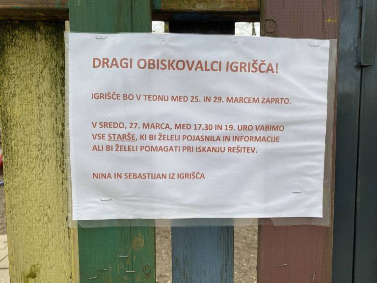 »Igrišče smo zaprli za čas iskanja rešitev, saj tako zaskrbljeni ne zmoremo otrokom, mladim in mladim družinam nuditi opore v njihovih stiskah, se igrati skrivalnic ali ponavljat poštevanko,« so še zapisali.