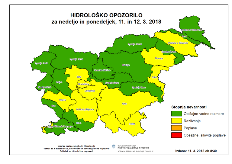 Ta vikend so že nastajale težave zaradi toplih žarkov sonca, taljenja snega in razlivanja rek, poroča Uprava Republike Slovenija za zaščito in reševanje.