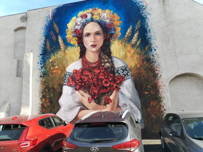 Steno garaže na zahodni strani občinske stavbe v Mariboru krasi nova velika poslikava oziroma mural, ki je delo mladega ukrajinskega svobodnega umetnika Konstantina Kachanovskega.