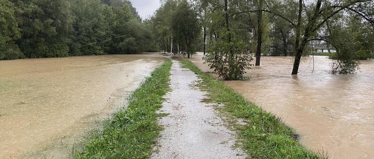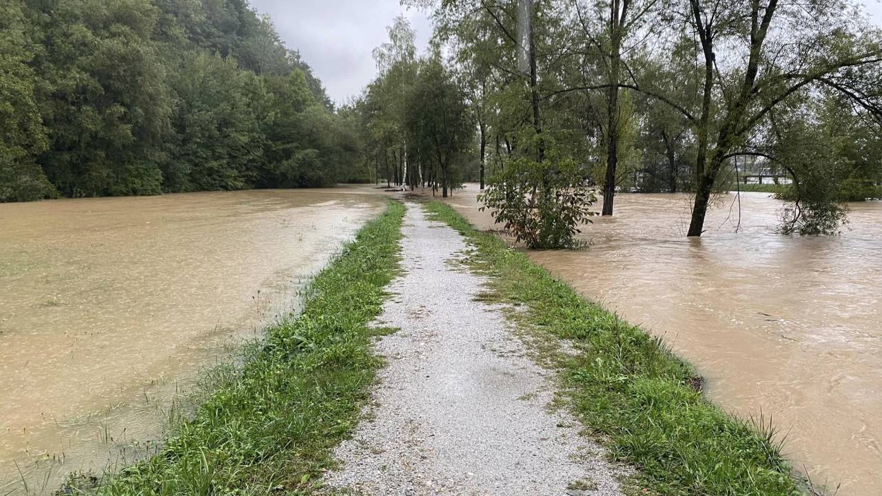 Prometno-informacijski center za državne ceste poroča o več zaporah cest, ki so posledica močnega naliva.
