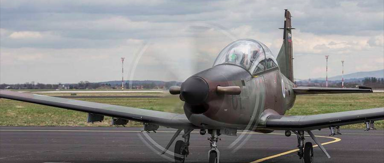 Med rednim usposabljanjem pilotov 152. letalske eskadrilje Slovenske vojske v letenju na nizkih višinah letalo Pilatus PC 9M Hudournik je danes, okrog 10. ure, po prvih podatkih zadelo v žice nadzemnega električnega voda na smeri Sveti Duh - Bukovje, so sporočili iz Slovenske vojske.