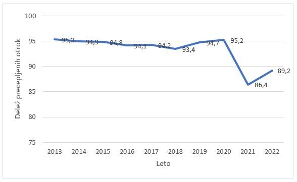 Leta 2020 je bila precepljenost za tretji odmerek 95,2-odstotna, leta 2021 86,4-odstotna, leta 2022 pa 89,2-odstotna