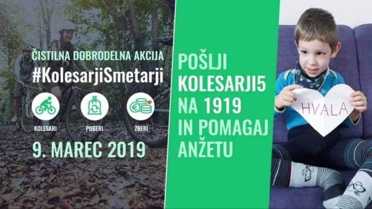 Družini oziroma Anžetu pa bo mogoče pomagati tudi v čistilni dobrodelni akciji s sporočilom Kolesarji5 na 1919.