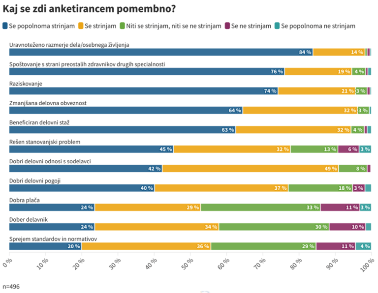 Pomembno so se razlikovale osebne vrednote, kjer je plača šele na 9. mestu, od ukrepov, ki bi jih lahko sprejeli danes, da bi se več ljudi odločilo za specializacijo urgentne medicine. Tam je bila plača na 1. mestu.