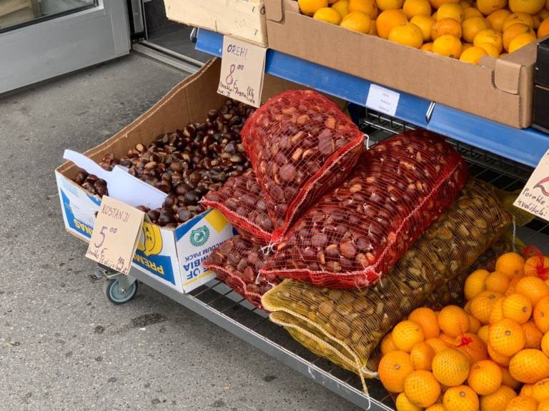 Na tržnici v Mariboru lahko kupite surov kostanj po pet evrov na kilogram, za ekološkega pa boste odšteli tudi devet evrov na kilogram.