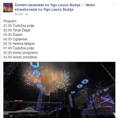 Največje silvestrovanje v Maribori pričakujejo kajpada na Trgu Leona Štuklja, ko bodo za pisano množico od desete ure naprej nastopali Tanja Žagar, Helena Blagne in Čudežna polja. Morda ste že slišali novico, morda tu ne, a tudi letos si lahko obetamo polnočni ognjemet, ki ga financirata Časnik Večer in Nova KBM. Samo prireditev pa v sodelovanju z Zavodom za turizem Maribor – Pohorje organizira podjetje Nipa. Tudi na Grajskem trgu bo veselo, saj bo od sedme zvečer pa vse do pete zjutraj množico zabaval DJ Popi. Prireditev organizira Društvo za oživitev Grajskega trga.