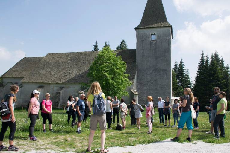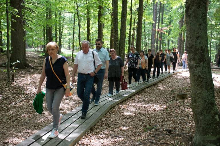 Predstavniki projektnih partnerjev in različnih lokalnih deležnikov, vrtcev, šol, knjižnic, turističnih društev, kulturno umetniških društev so se udeležili vodene študijske ture po Pohorju.