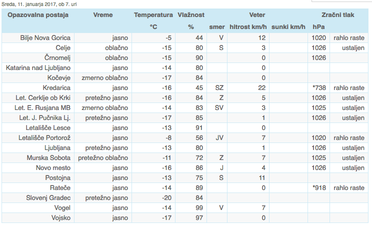 Danes po Sloveniji še pričakujemo zelo nizke zimske temperature.