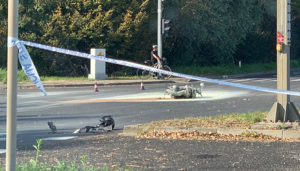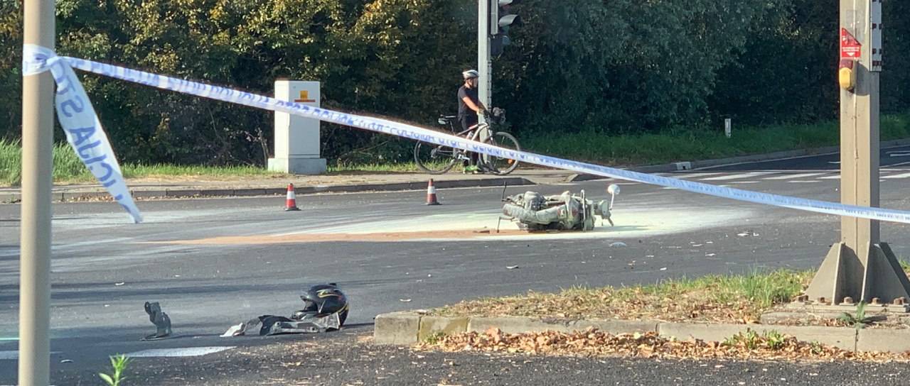 Voznica tovornega vozila je v križišču, s sprednjim levim bočnim delom svojega vozila trčila v motorno kolo. Po trčenju je voznika motornega kolesa odbilo v zadnjo levo bočno stran tovornega vozila, nakar je padel po vozišču in zaradi telesnih poškodb na kraju umrl. Motorno kolo, ki ga je vozil voznik je po trčenju zagorelo.