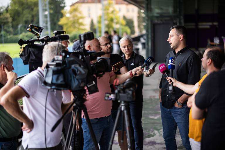 Nogometni prvoligaš iz Maribora je za danes medijem predstavil novega glavnega trenerja Radomira Đalovića, vijolični so pod njegovim vodstvom tudi prvič trenirali.