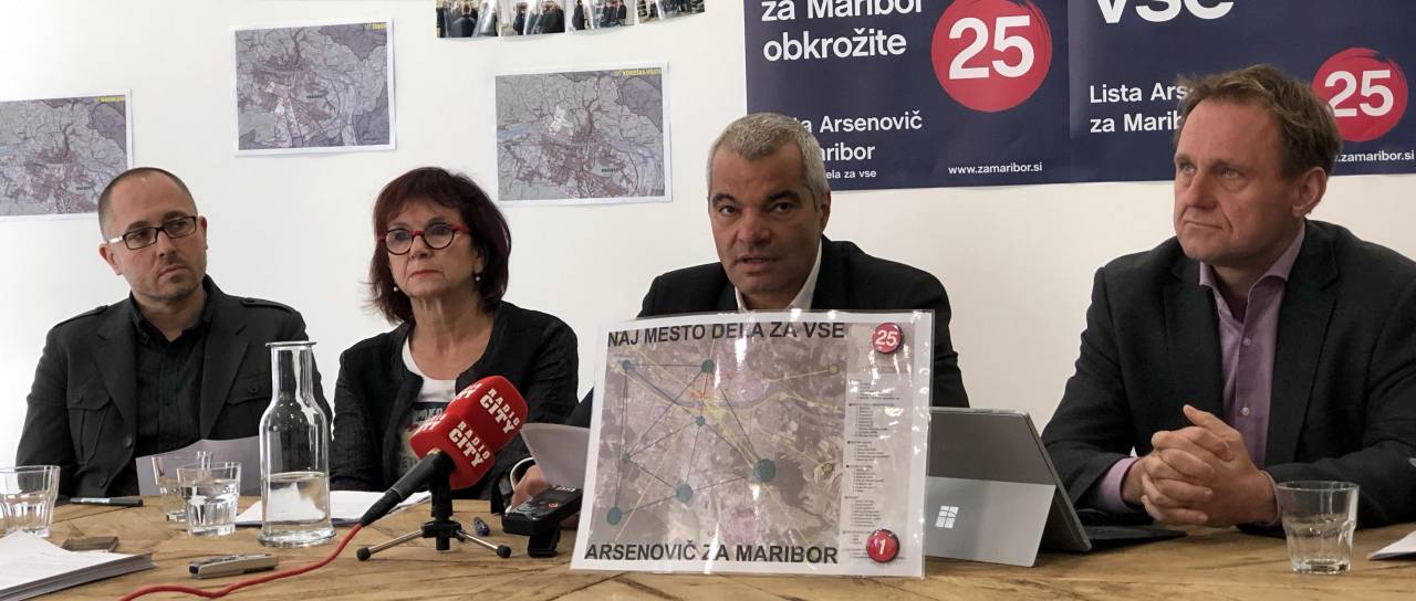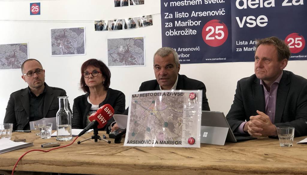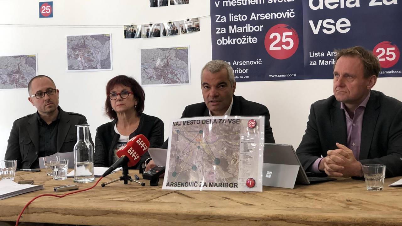 Kandidat za župana Maribora Saša Arsenovič je v družbi Liste Arsenovič za Maribor za mestni svet predstavil ključne poudarke njihovega programa. V družbi Arsenoviča so bili Gregor Reichenberg, Zora A. Jurič, Samo Medved in Peter Bratina.