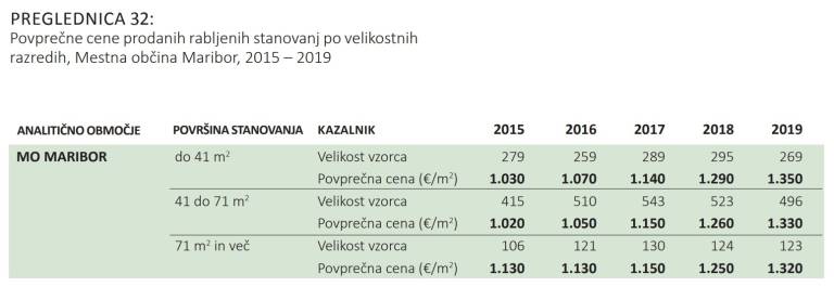 Razlike v cenah glede na velikost stanovanj v mariborski občini niso velike. Lani so se cene, sicer relativno najdražjih garsonjer in enosobnih stanovanj gibale okoli 1350 evrov na kvadratni meter, kvadratni meter večjih stanovanj pa je bil v povprečju za odstotek ali dva cenejši.