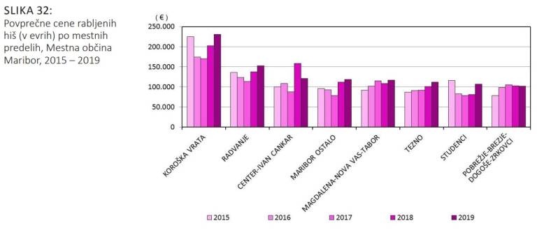 Cene hiš so bile lani kot običajno najvišje v mestnem predelu Koroška vrata, ki velja za stanovanjsko najbolj zaželen del Maribora. Glede na starostno in velikostno strukturo prodanih hiš s pripadajočimi zemljišči so bile cene le malo nižje v predelu Radvanje, medtem ko so bile na ostalih območjih občine Maribor nižje za 30 do 40 odstotkov.