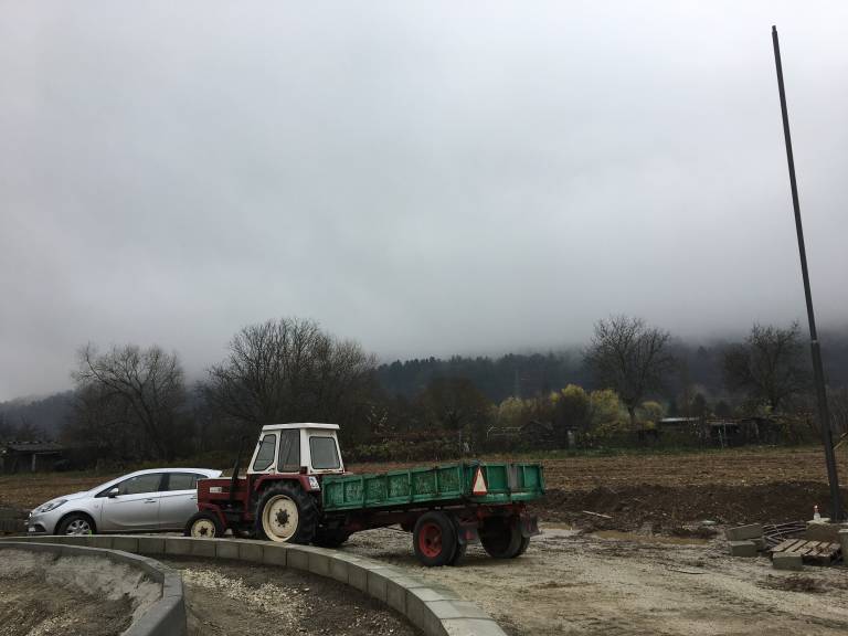 »Ko sem sparkiral traktor, sem o tem tudi obvestil policijo, da ne bi bilo kaj narobe. Ko so prišli, so pogledali, kje je meja in rekli: ‘Lastnik ste vi in lahko postavite in parkirate kakor želite’. Potem pa je policija odšla,« je še povedal lastnik zemlje ob gradbišču.