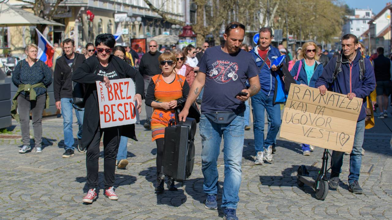 Na mariborskem Trgu svobode so se ponovno zbrali protestniki, ki protestirajo proti vladnim ukrepom.
