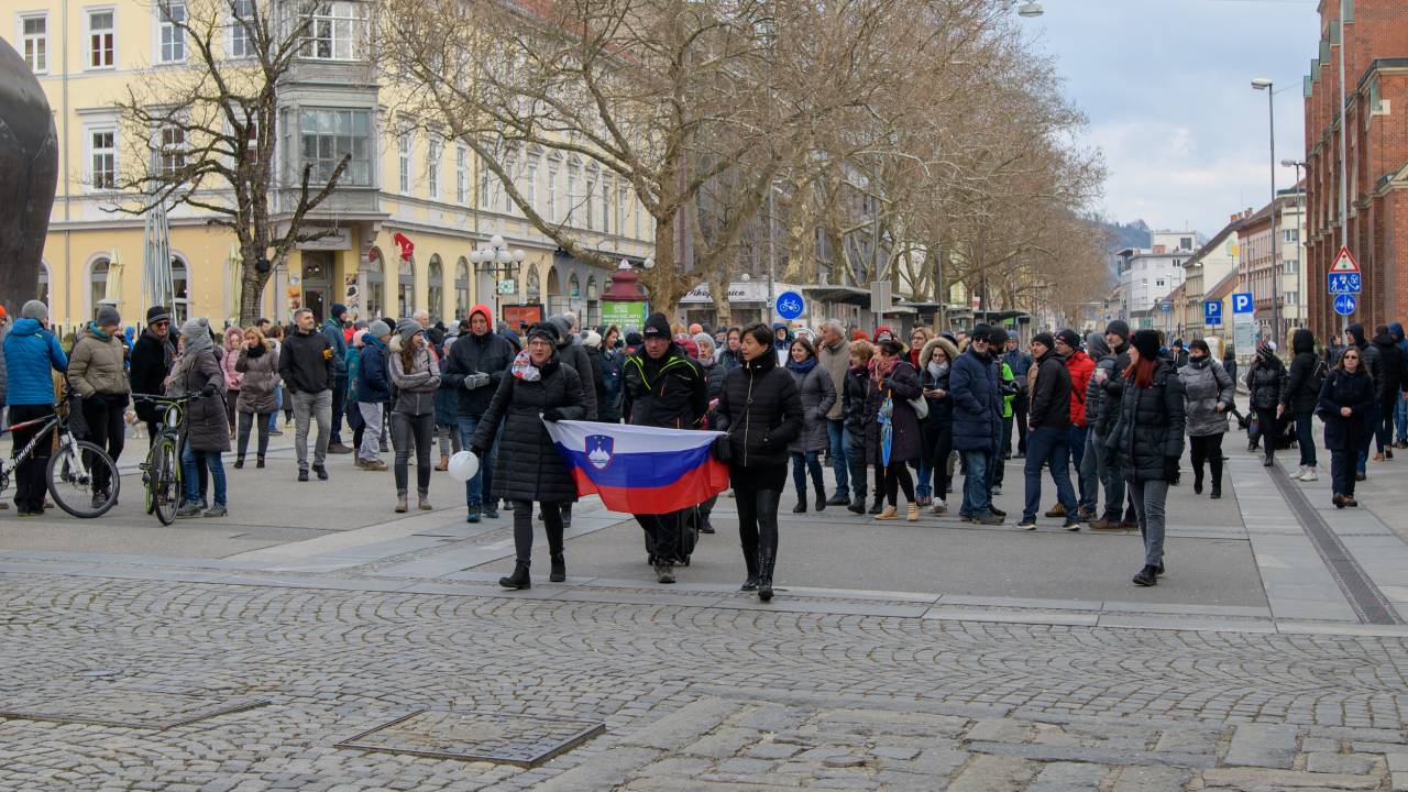 V središču Maribora se je danes na mirnih protestih zbralo nekaj sto ljudi, ki so izražali nasprotovanje ukrepom za omejitev širjenja novega koronavirusa in cepljenju. Shod je spremljala policija, ki pa ni posredovala.