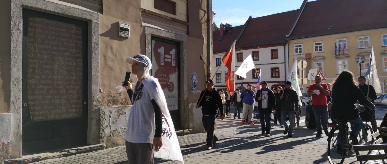 Pričel se je pred pisarno Zedinjene Slovenije in nato nadaljeval po mestnem jedru. Mi pa smo jih srečali na Poštni ulici v spremstvu dveh policistov.