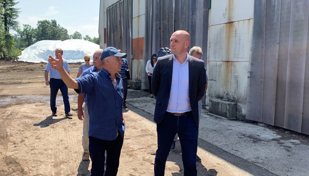 Okoljski minister Simon Zajc je najprej v Šentilju sestankoval z vodstvom občine, civilne iniciative in kompostarne, a za zaprtimi vrati. Nato pa mu je lastnik Karli Udovičič podrobno razkazal kompostarno, kjer je bil kompost tokrat pokrit s folijo.